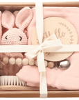 Introducing our charming 6-Piece Baby Gift Set, thoughtfully curated to delight both parents and their precious little one. This ensemble includes everything a baby needs, beautifully presented in a rustic kraft box adorned with a clear lid and tied with a soft cotton ribbon.